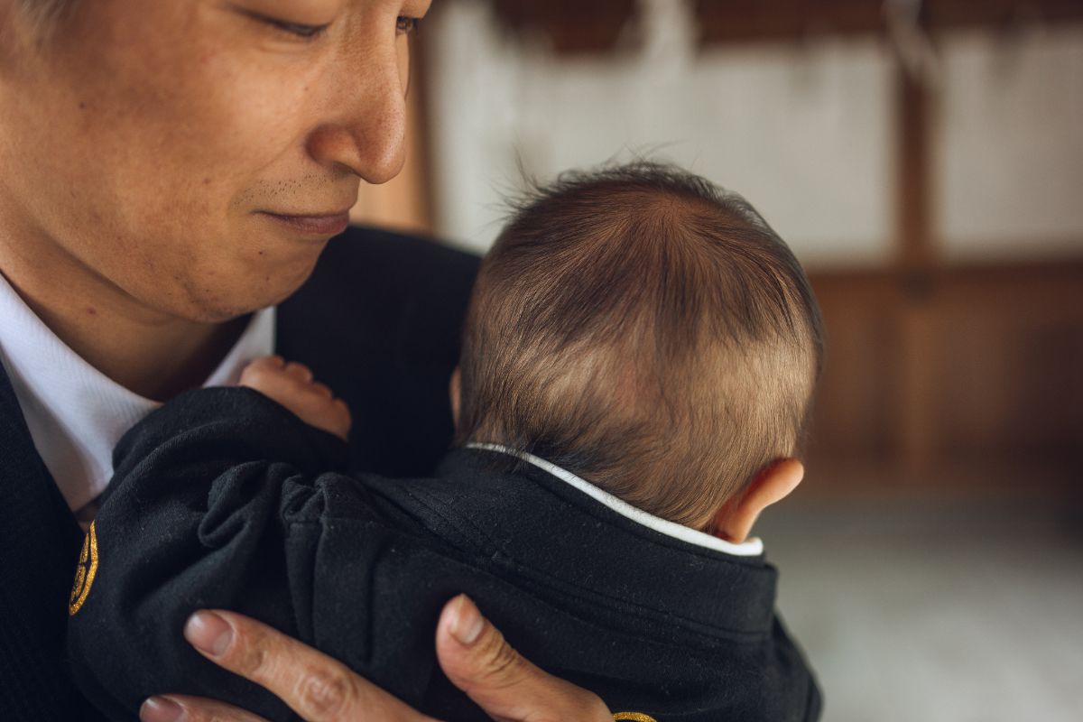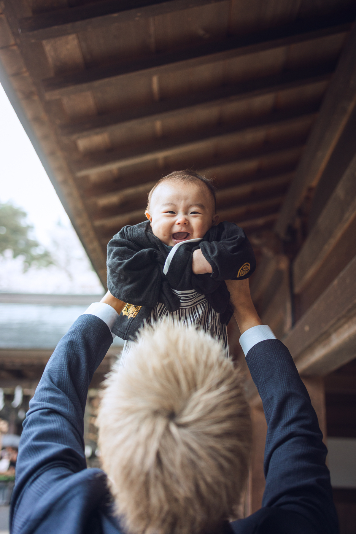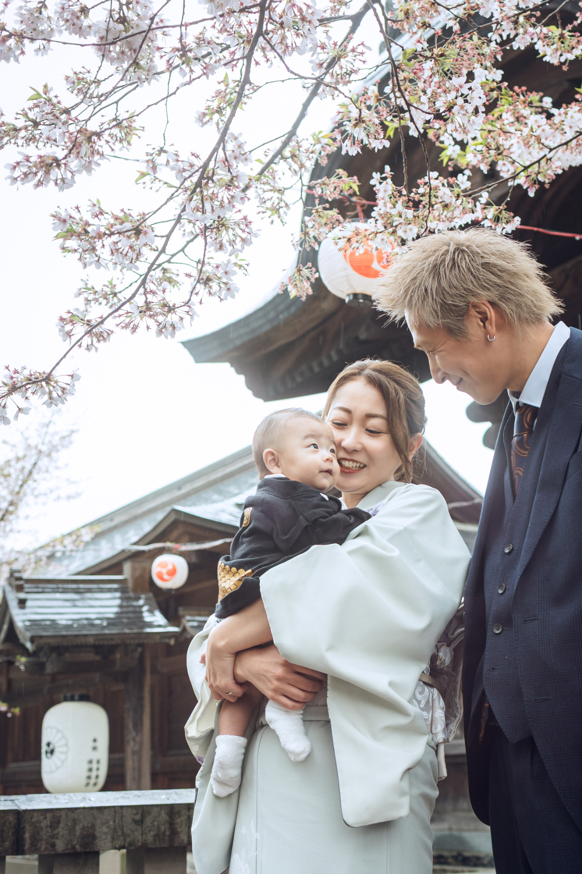 小雨が降る中での、お宮参りの撮影でした。とても優しいご家族様のお陰で温かい時間を過ごさせて頂きました。 ご用意してくださった産着を掛けて、ご祈祷へ。戻られると、スヤスヤと眠っていた僕ちゃん。寝顔も可愛くて、つい撮りたくなっちゃいますね。桜がまだ少し残る季節。途中から雨も上がり、パパの高い高いでニコニコの笑顔も見せてくれて、幸せいっぱいの時間を過ごさせて頂きました。すくすく元気に大きくなぁれ。 minafilm