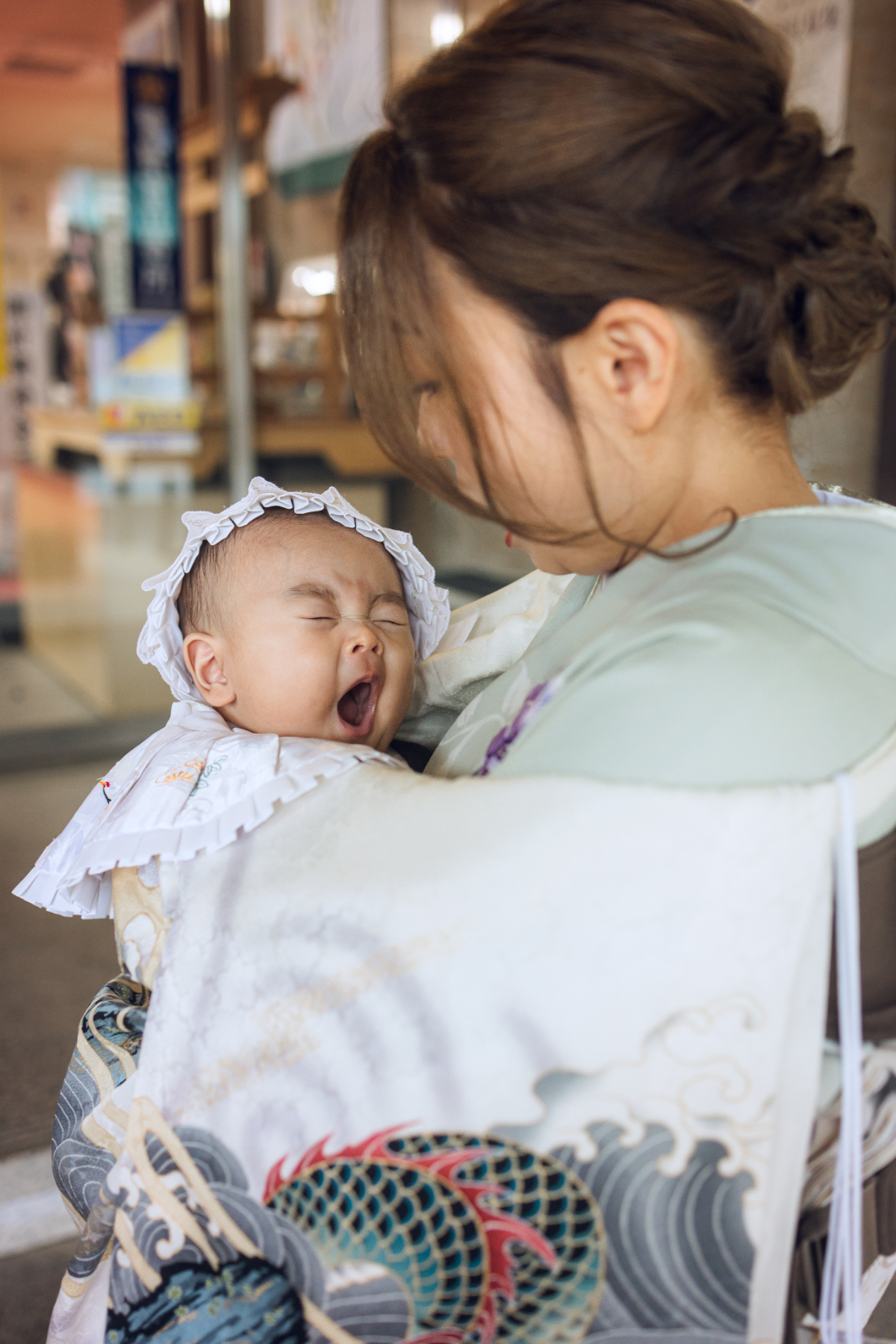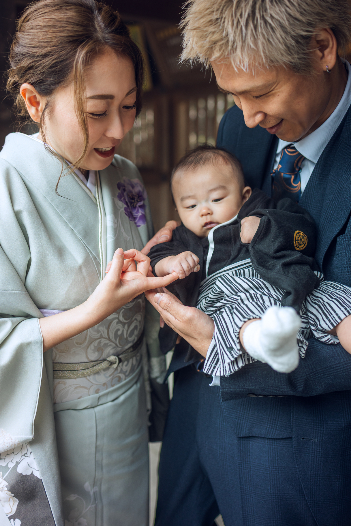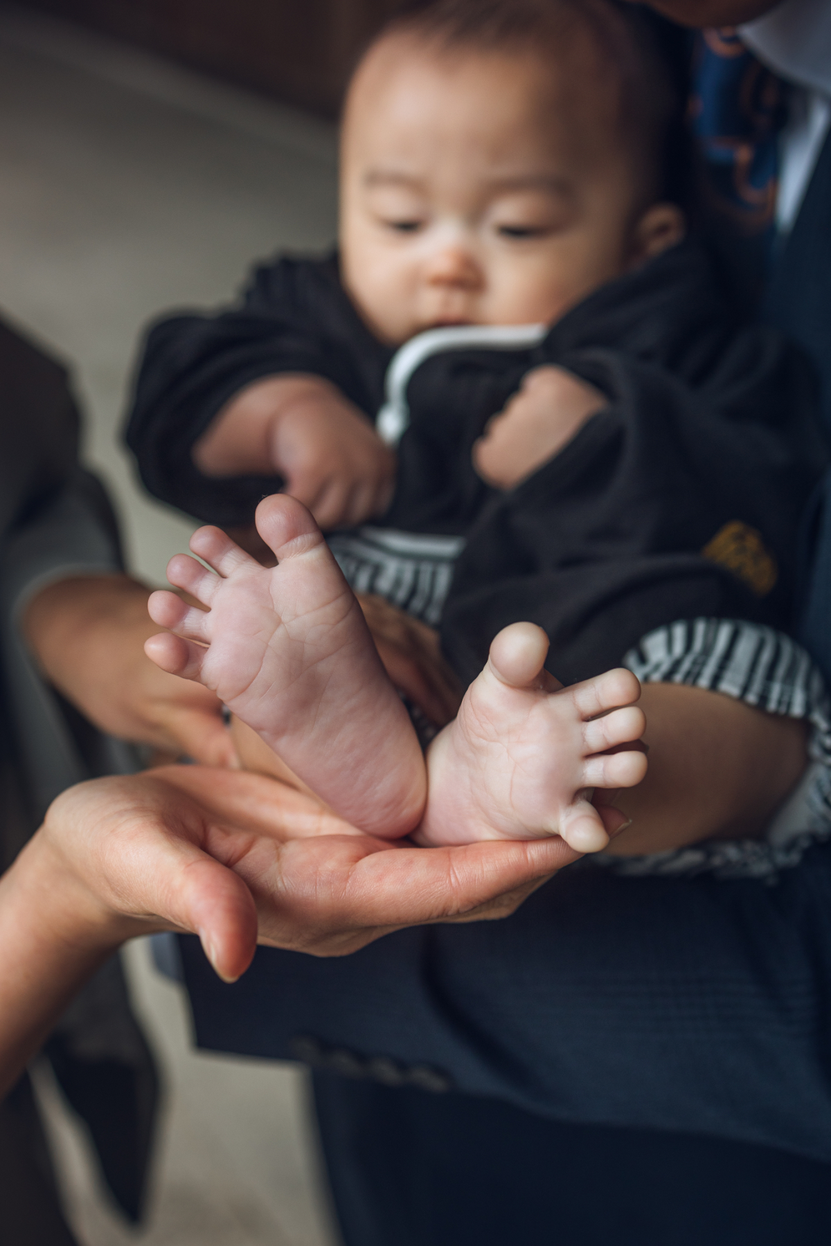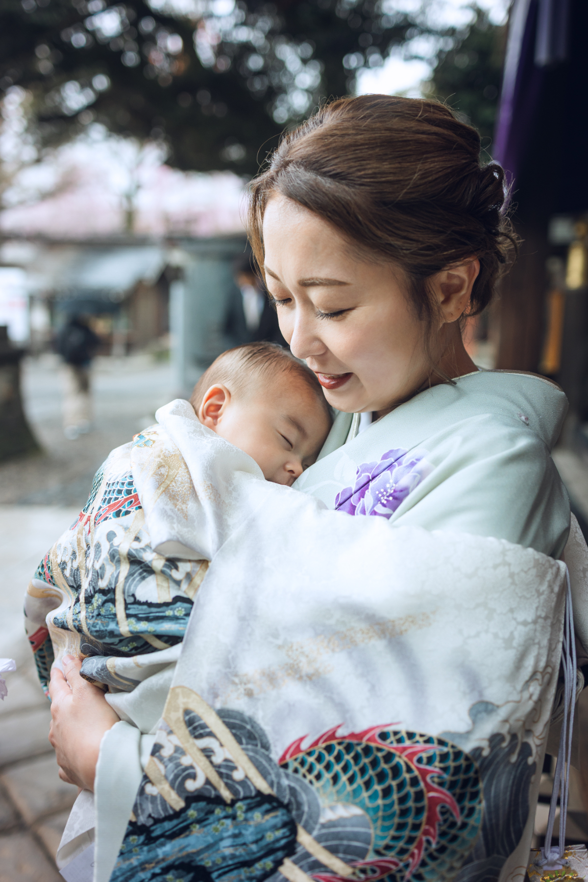 小雨が降る中での、お宮参りの撮影でした。とても優しいご家族様のお陰で温かい時間を過ごさせて頂きました。 ご用意してくださった産着を掛けて、ご祈祷へ。戻られると、スヤスヤと眠っていた僕ちゃん。寝顔も可愛くて、つい撮りたくなっちゃいますね。桜がまだ少し残る季節。途中から雨も上がり、パパの高い高いでニコニコの笑顔も見せてくれて、幸せいっぱいの時間を過ごさせて頂きました。すくすく元気に大きくなぁれ。 minafilm